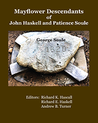 JOHN HASKELL was the oldest son of the immigrant, ROGER HASKELL, who settled in Salem, Massachusetts in 1635. Roger was the oldest son of WILLIAM HASKELL and ELINOR FOULE, whose descendants are described in the book, Haskells in North America – Descendants of William Haskell and Elinor Foule Through Five Generations, published by the Haskell Family Association. JOHN HASKELL married PATIENCE SOULE, the daughter of Mayflower passenger GEORGE SOULE on 16 January 1666. This book details the genealogy of the descendants of JOHN HASKELL and PATIENCE SOULE through six generations. These descendants include hundreds of surnames including ADAMS, ALLEN, BABBITT, BAKER, BALDWIN, BARRETT, BROWN, CHASE, CLARK, CORY, COVELL, DEMORANVILLE, DRINKWATER, FULLER, HARRIS, HASCALL, HASKELL, HEDLEY, MERRILL, RANSFORD, REED, REYNOLDS, SKAATS, SMITH, STONE, TALBOT, TRIPP, WELD, WESTCOTT, and WOODBURY. The book is based on an extensive genealogical database, containing the names of over 230,000 people, maintained by the Haskell Family Association. Links to this database can be found on the Genealogy page the website.