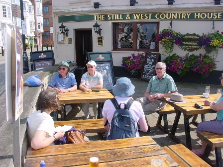 Merv Stevens, Terry Taylor, and Alan Haskell enjoying a drink after our walking tour of Old Portsmouth.