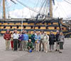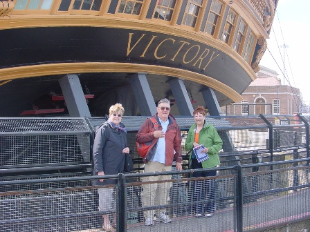 Edie Haskell, Dick and Betsy Fisk in front of the HMS Victory.