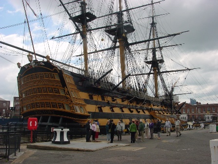 Guided tour of Historic Portsmouth Dockyard. HMS Victory on which Nelson fell at the Battle of Trafalgar in 1805.
