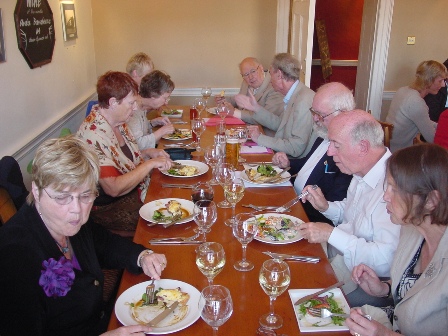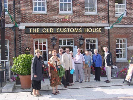 The Saturday night dinner was held at The Old Custom House. Left-to-Right: Edie Haskell, Betsy Fisk, Dick Fisk, Melvyn Sutherland, Sue Harvey, Roger Emmins, Jean Haskell, Christine Simmons, George Haskell