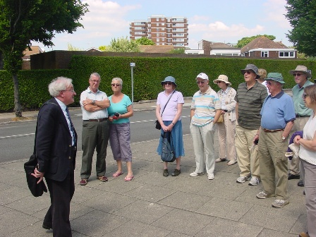Although the actual International Haskell Family Society reunion began on Thursday, June 17, 2010, four of us Americans (Dick & Betsy Fisk & Dick & Edie Haskell) arrived in beautiful sunny weather on Wednesday, the 16th. After check-in at the Royal Beach Hotel in Southsea, we saw our other American cousin, Mervin Stevens who had been out taking his daily long, long walk. He joined us as we walked a few blocks to the Florence Arm Pub for lunch. Then in the afternoon we walked on the boardwalk along the waterfront and enjoyed the sea and the beautiful gardens. Upon our return to our hotel, we went into the lounge for our favorite - tea & scones with clotted cream. Roger and Maureen Emmins joined us for conversation and an update on all of their doings.