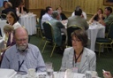 An enjoyable social hour with open bar started at 6:00 pm in the Stevens Room and was followed by a dinner of either chicken or steak. Dick Haskell had ordered the menu for this dinner back in November but had forgotten what he had ordered for dessert. Inasmuch as there was an extra fork at each place, everyone at his table tried to guess what the dessert would be. Dick said that he hoped it would not be cheesecake, because he had ordered that (on Carey’s recommendation!) a couple of weeks earlier to go with the Saturday night buffet at the Inn at Herr Ridge. As the trays of cheesecake started to be passed out, Dick thought fast to try to turn lemons into lemonade. He explained the situation to everyone, and told them that we were starting a new Haskell tradition. From now on, cheesecake was to be the official dessert of the Haskell Family Association. Based on the legend of the Haskell coat of arms, we should probably have had apple pie!