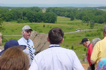 A three-hour, Haskell-oriented, guided tour of the battlefield on Saturday morning was the highlight of the 2011 Haskell family reunion at Gettysburg on June 17-18. This was preceded by a Friday night banquet at the Gettysburg Hotel and followed by a Saturday night farewell dinner at the Inn at Herr Ridge.