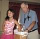 Mary Mears-Haskell accepts the winning raffle prize for her mother-in-law, Jane Haskell - an autographed copy of The Civil War by Ken Burns