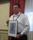 Bob Haskell wins a framed Haskell coat of arms in the raffle.