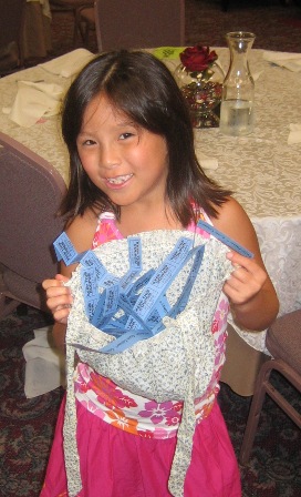 Dick Haskell gets help drawing the raffle tickets after dinner on Saturday.