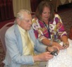 David (Wiskers) Haskell and Penny Allen holding an autographed copy of Chronicles of the Haskell Family by Ira Haskell.